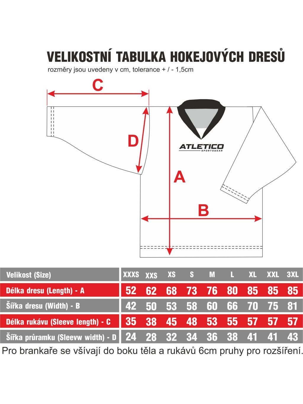 - velikosti XXS až XXL + velikost pro gólmana