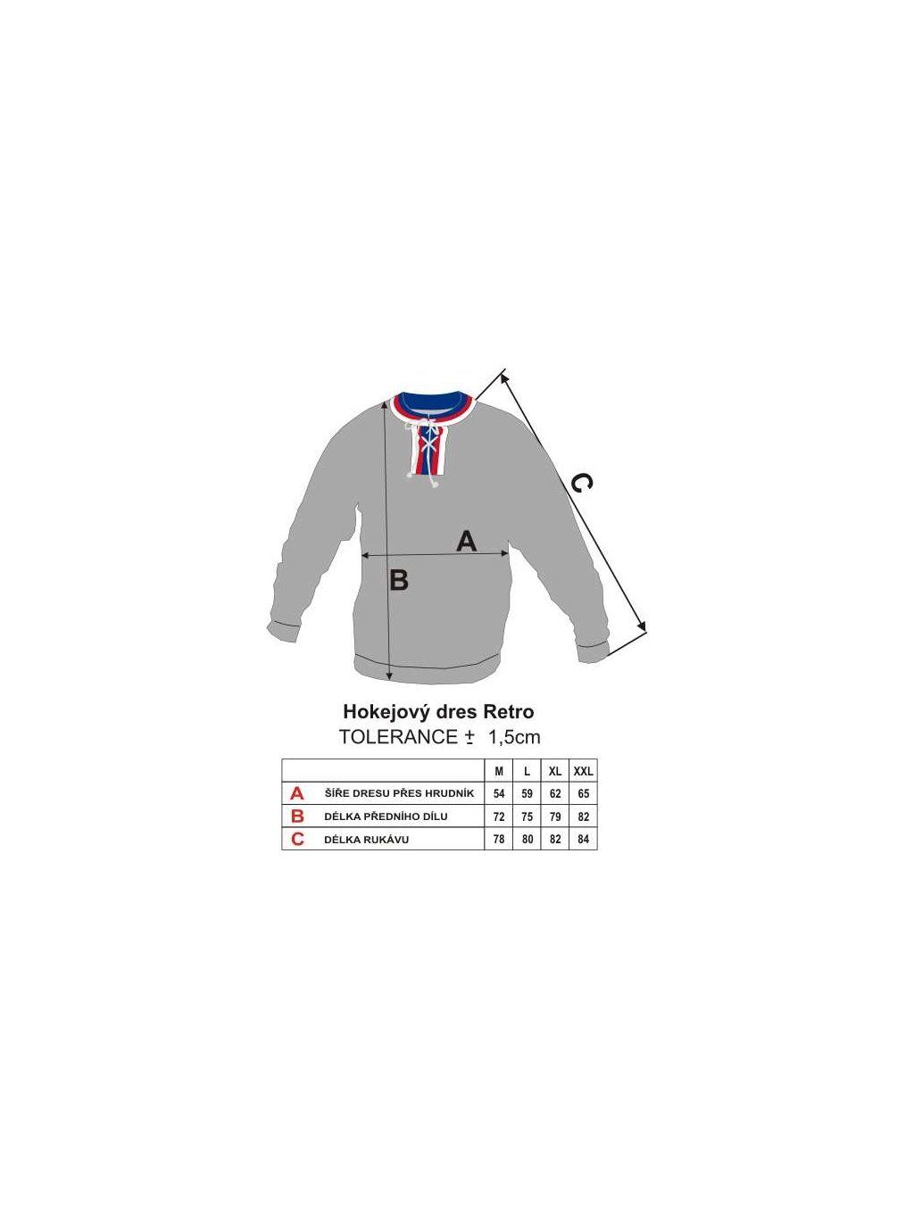 - velikosti: M-XXL odpovídají dobovým velikostem a nelze pod dresy nosit současnou hokejovou výstroj