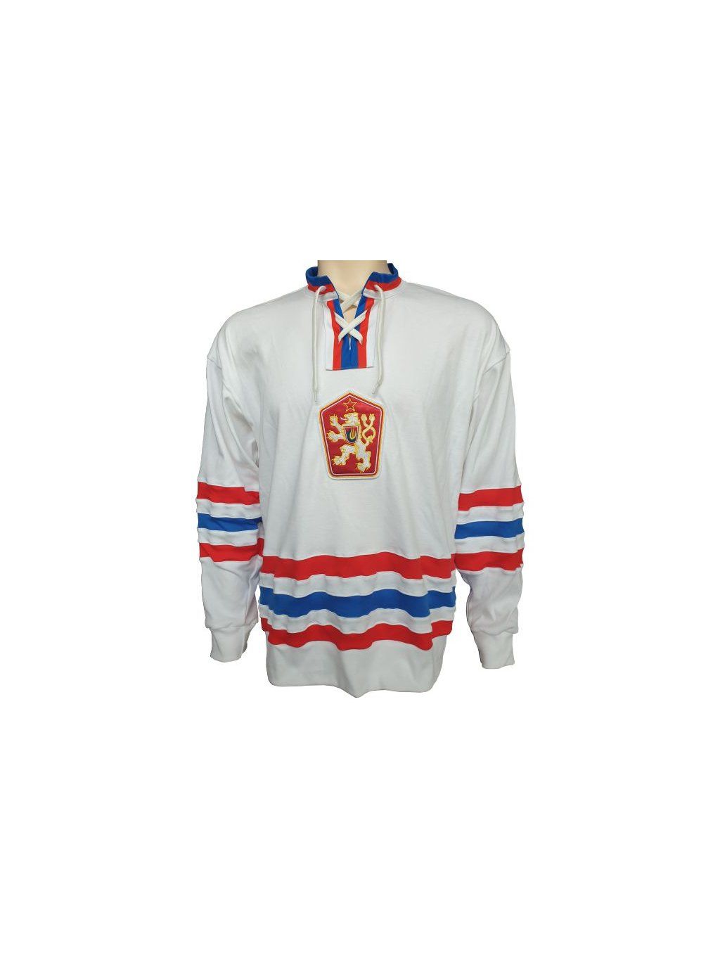 replika bavlněného hokejového dresu ČSSR 1970, s našívaným nápisem ČSSR na hrudi