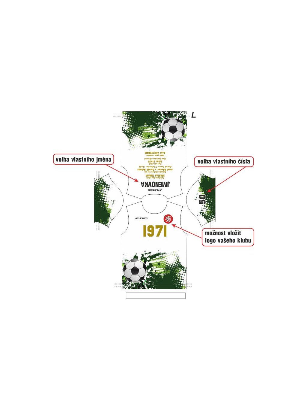 Na zádech možnost volby jména, na rukávu volba čísla a na srdce možnost potisku loga Vašeho klubu. Požadavky uveďte do poznámky v nákupním košíku!!!